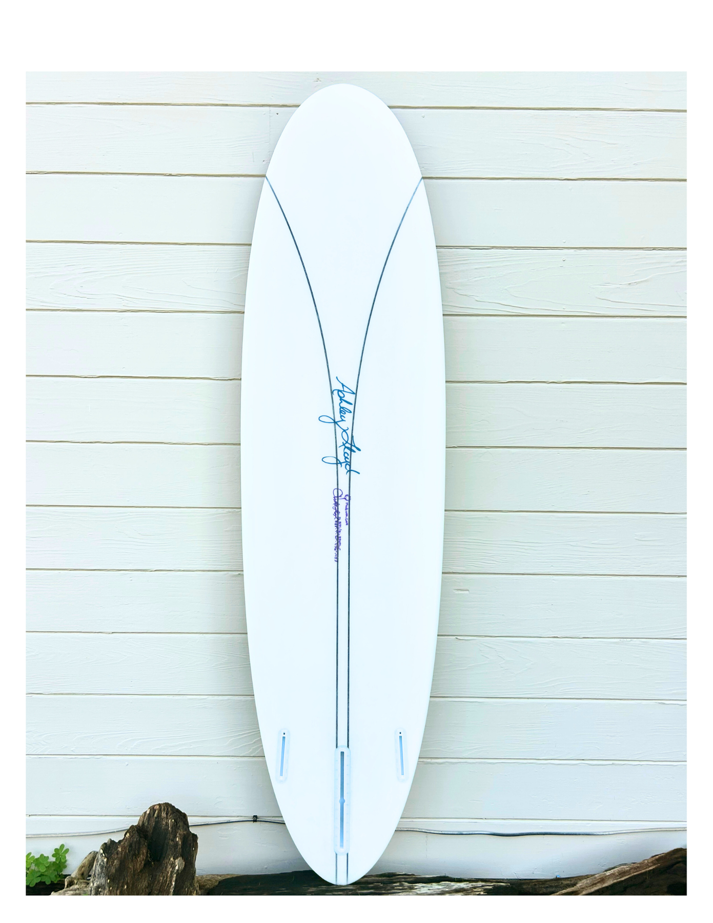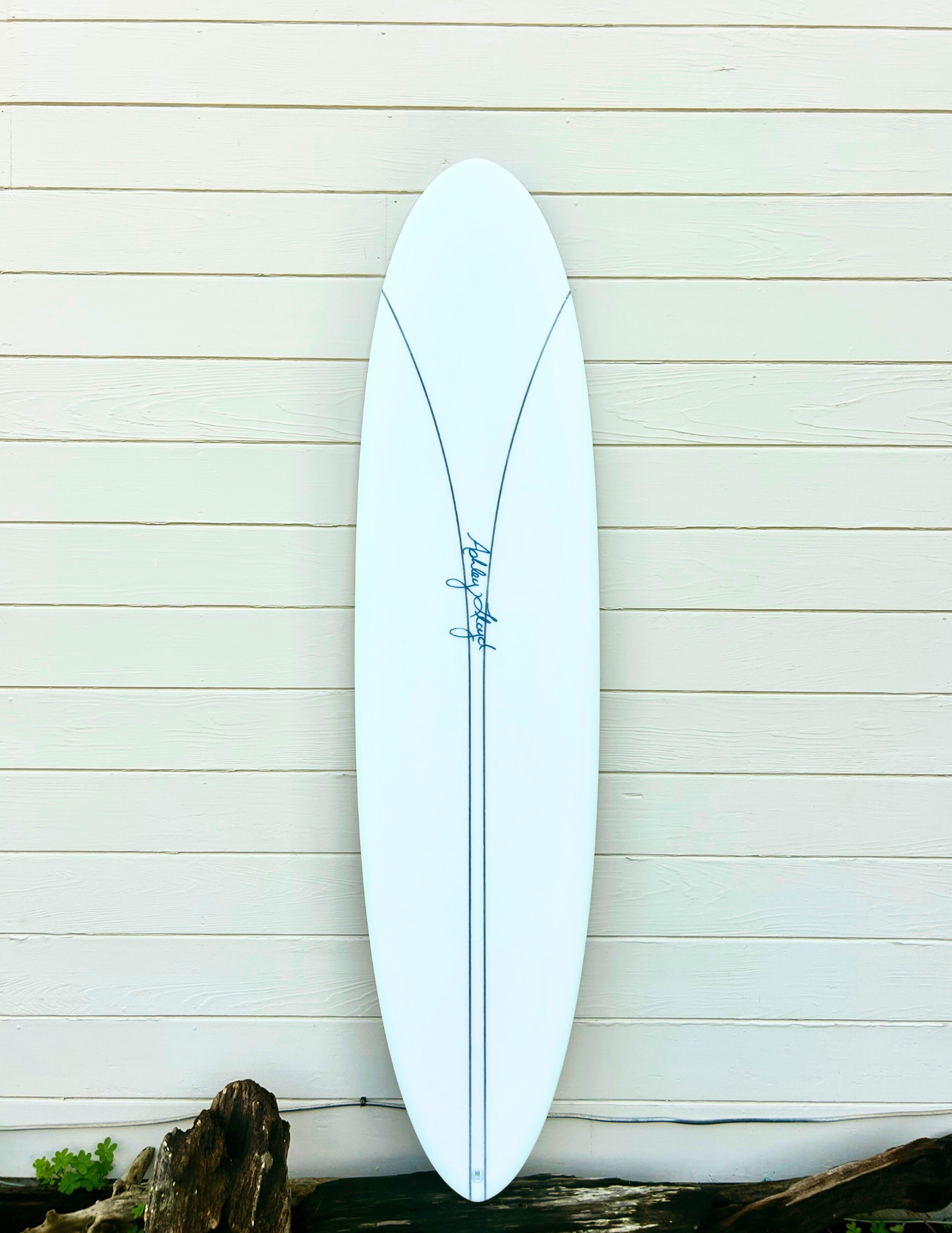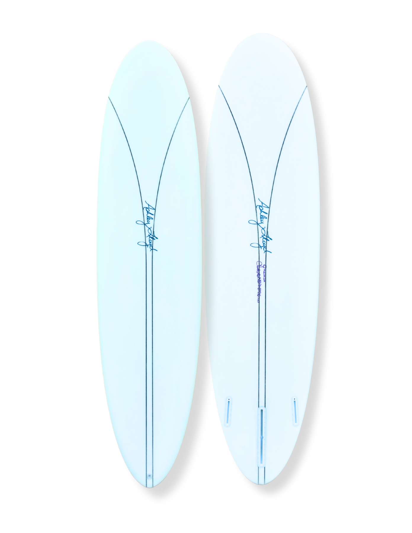 Mid-length with a 2+1 fin set up. Single to double concave for ease of water flow control and maneuverability.