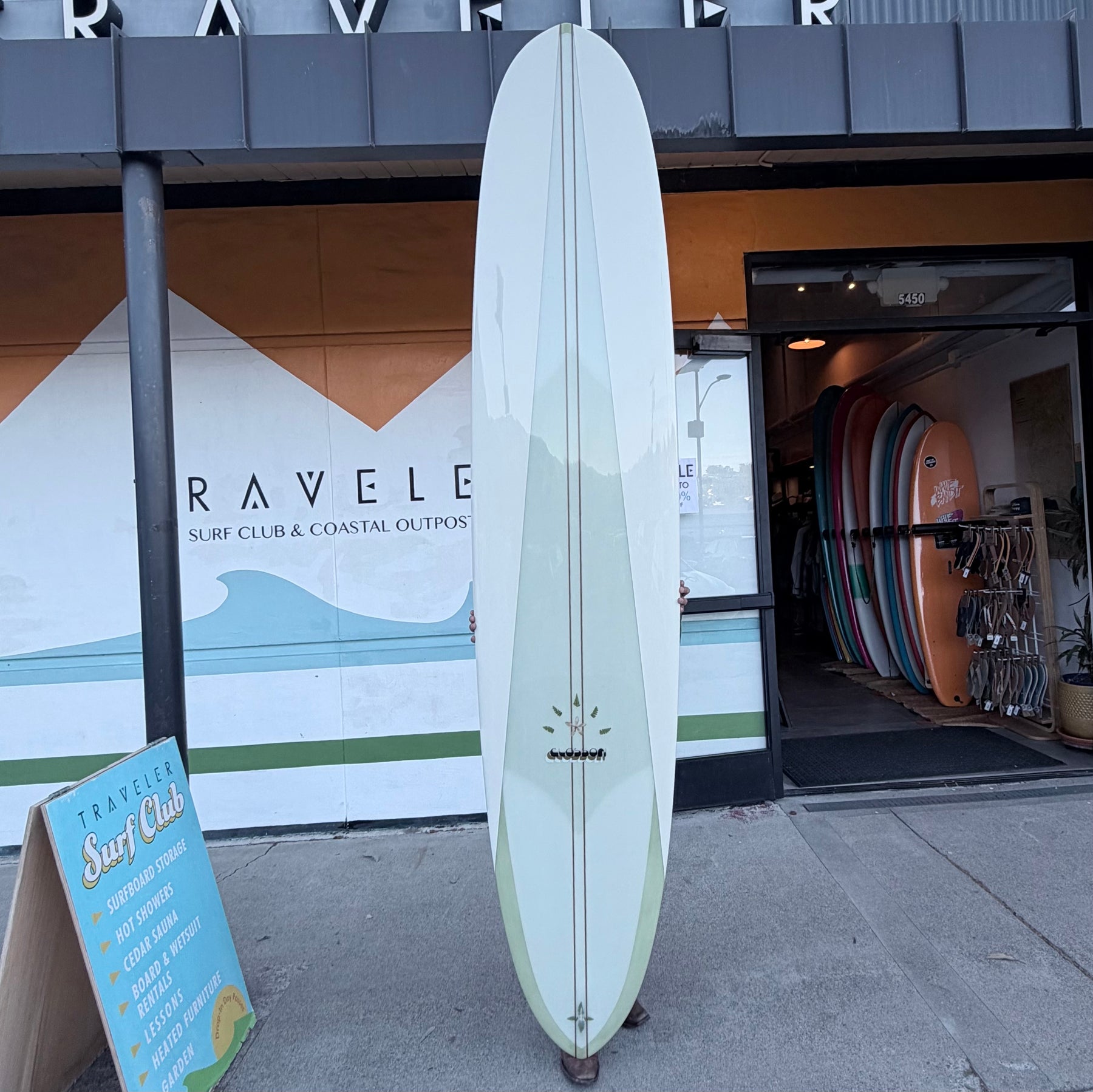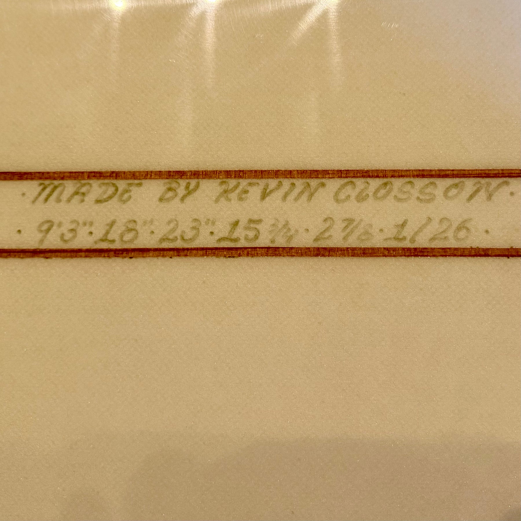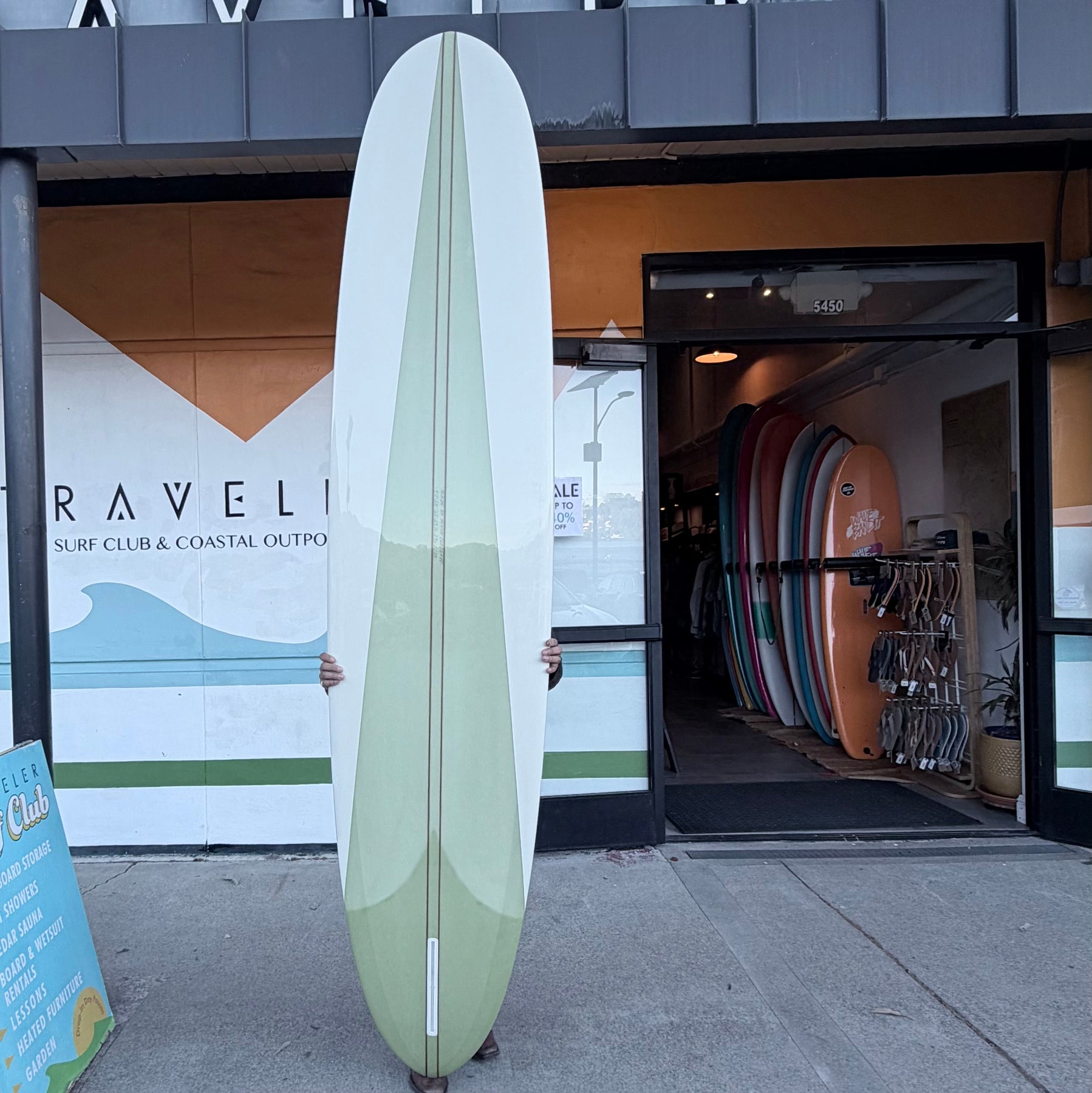 Shaped by local shaper Kevin Closson, this single fin beauty has a slight nose concave which blends to a flat roll to rolled V to flat behind the fin box. Glassed with classic weight to plow through steep sections while maintaining the stability needed to noseride. The tail flip allows for long tip time while the pin tail allows for easy turning. The attention to detail on this board is amazing from the resin leash-loop to the classic lines and laminated flower and ferns. This board is as gorgeous as it is functional.