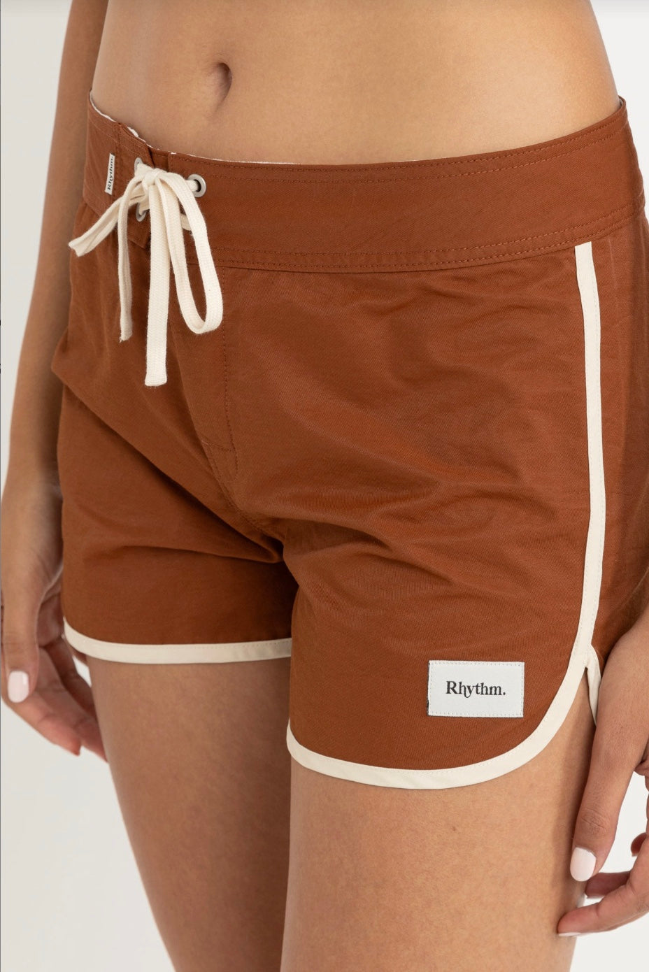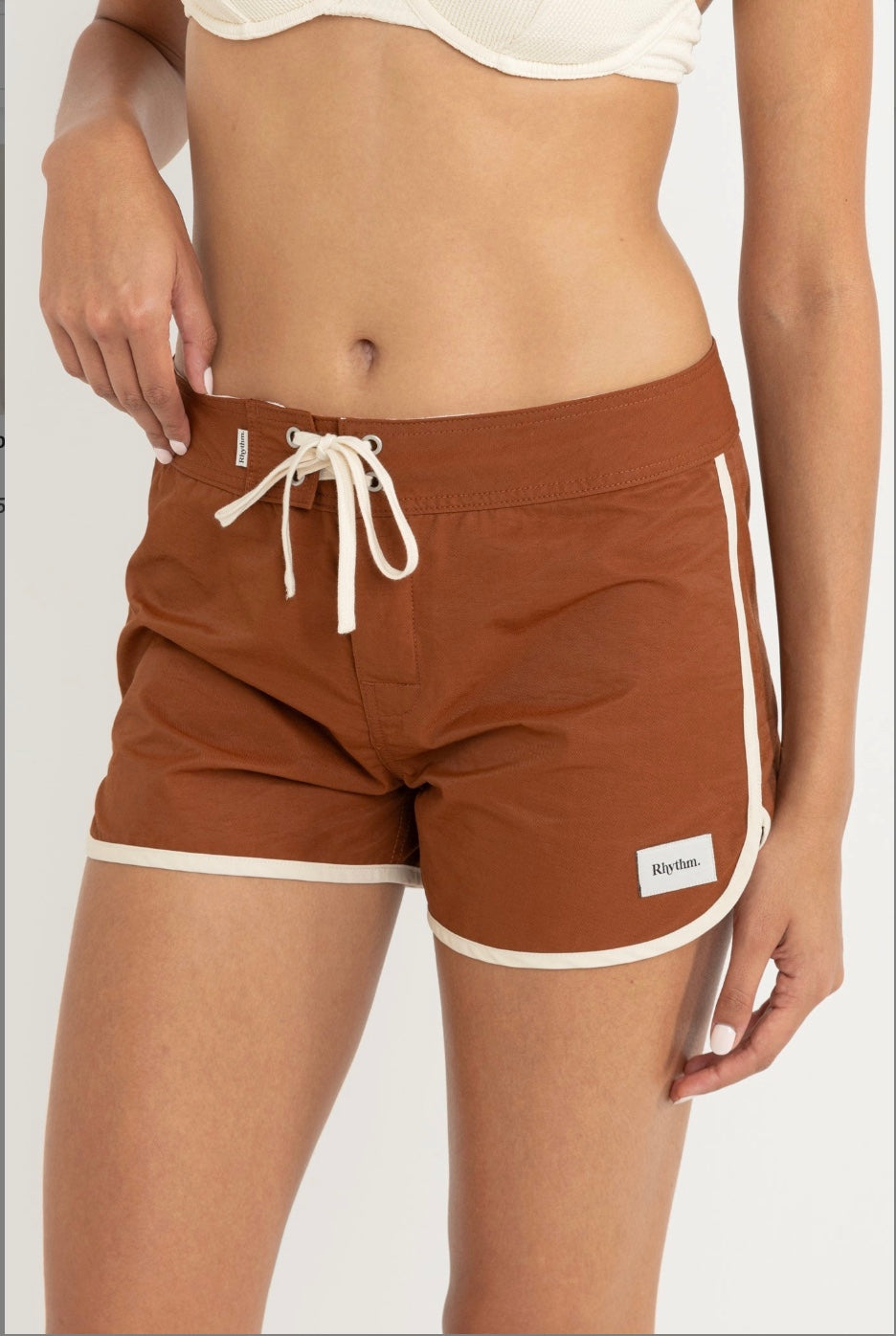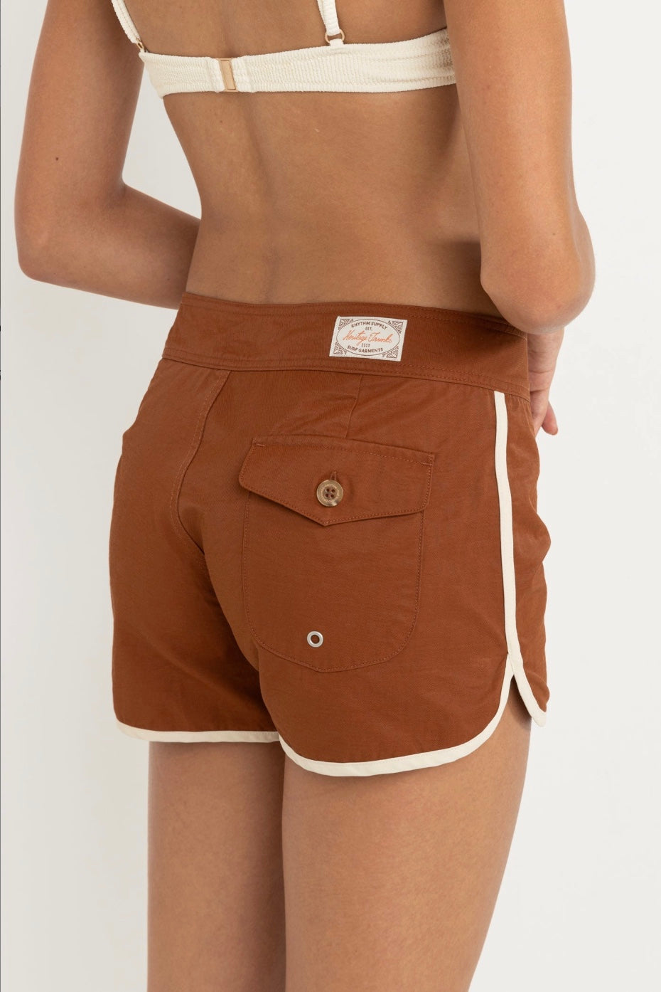 Playful and sporty, the Cabana Short in Brown features a wide tied waist band, back pocket with key string and button closure. A Classic high performance short for more coverage on a day full of surf and sun.