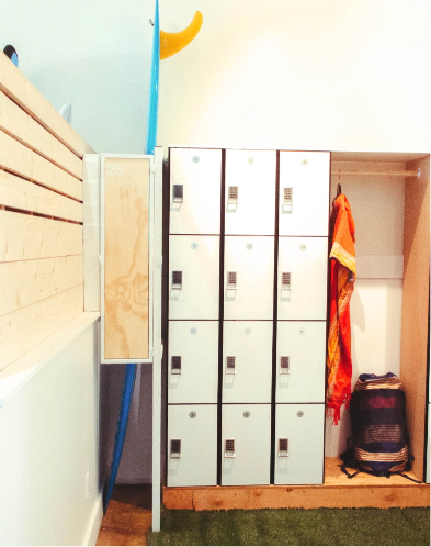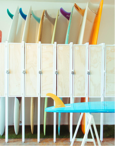 In partnership with Public Bikes, customers have access to beach cruisers with board racks, so they can access multiple breaks along the cliff.