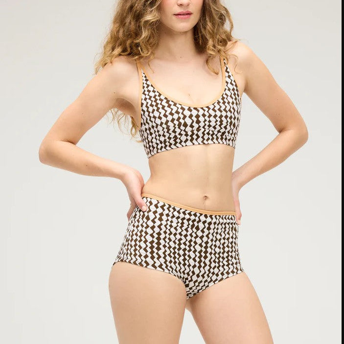 With thin adjustable straps and binding covering the interior seams for extra support, the Maggie is your new "comfy but cute" top you'll wear from the surf to yoga to everywhere in between.