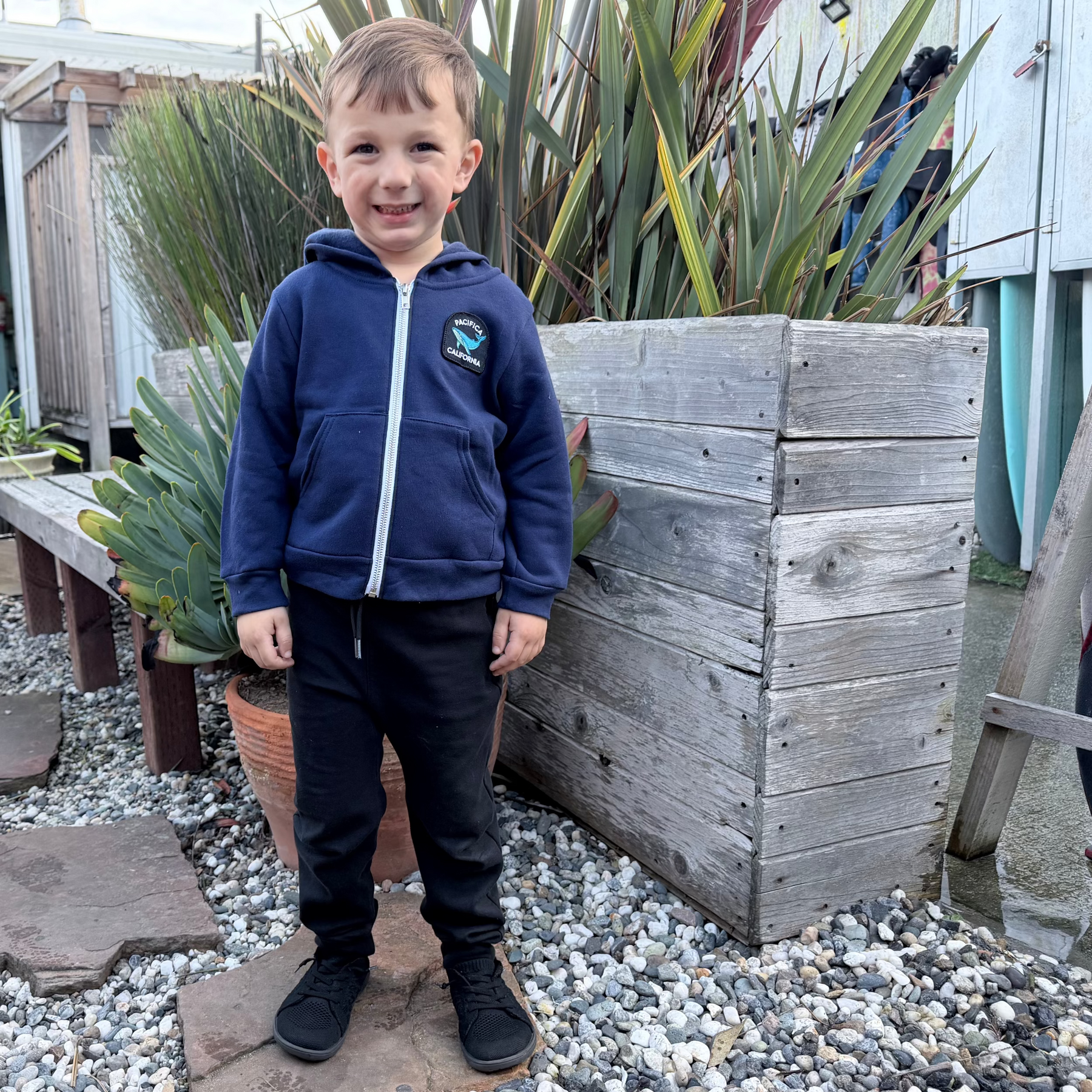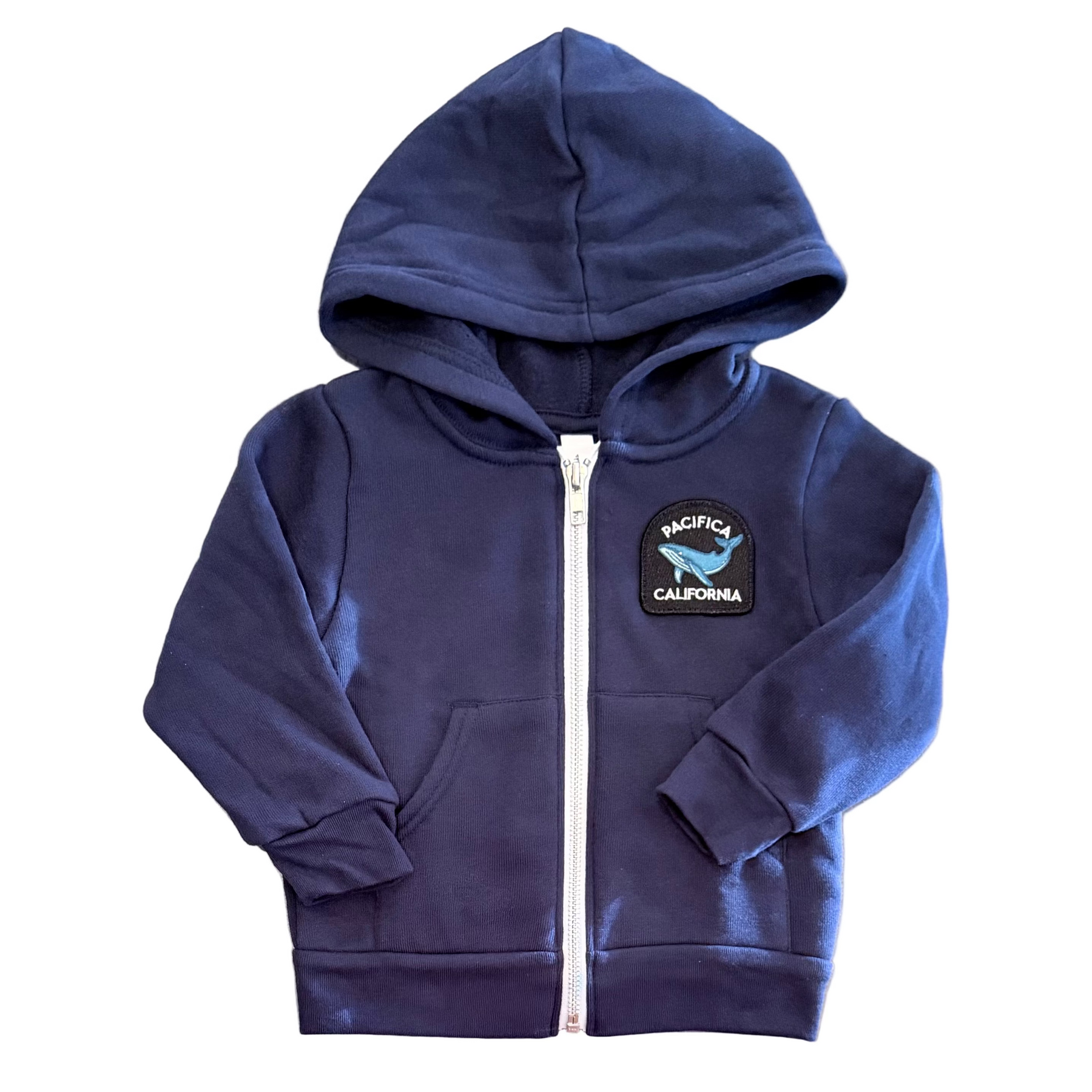 This soft, cozy sweatshirt is a shout out to one of Pacific's most popular locals. Locally made and sporting the Pacifica Whale patch, it will kept your little one warm on any morning walk, night time camp out or just running around the playground. The roomy kangaroo pockets will keep their fingers toastly and are great for collecting any rocks or seashells they may find.