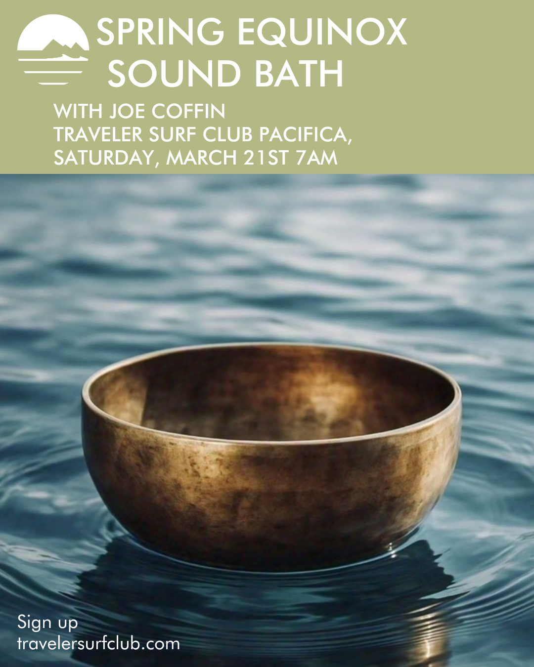 Traveler Surf Club and Joe Coffin of The MATS invite you to gather for a communal morning of reflection, grounding, and renewal as we welcome the season together. This immersive experience blends a smudging ceremony, guided meditation, intention setting, and a full live sound bath — singing bowls, flute, chimes, thunder drum, and more! Designed to support deep rest, clarity, and whole-body regeneration; held in community, by the coast, at Traveler Surf Club Pacifica.